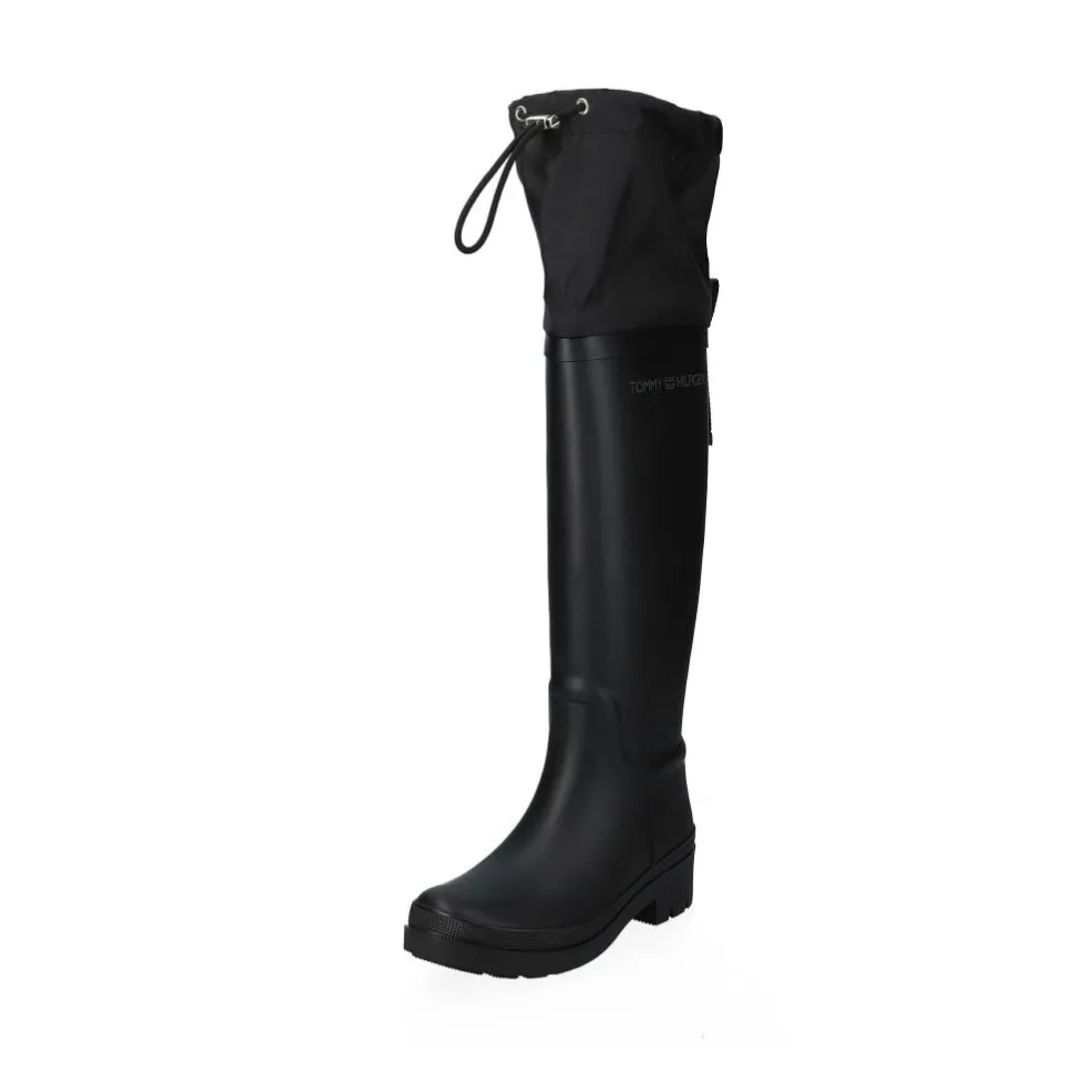 Die modischen Overknee-Gummistiefel von Tommy Hilfiger sind der ideale Begleiter bei Regenwetter.